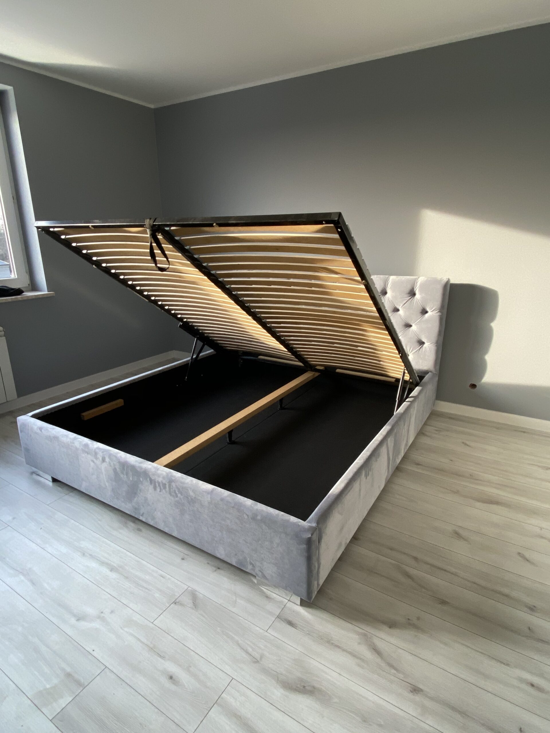 Szukasz sposobu na zaoszczędzenie miejsca w sypialni? Wybierz łóżko tapicerowane z pojemnikiem! Ten praktyczny mebel ukryje pościel, koce i inne przedmioty, zapewniając Ci dodatkową przestrzeń do przechowywania. Pojemnik jest dostępny tylko przy wyborze stelaża z metalową ramą.